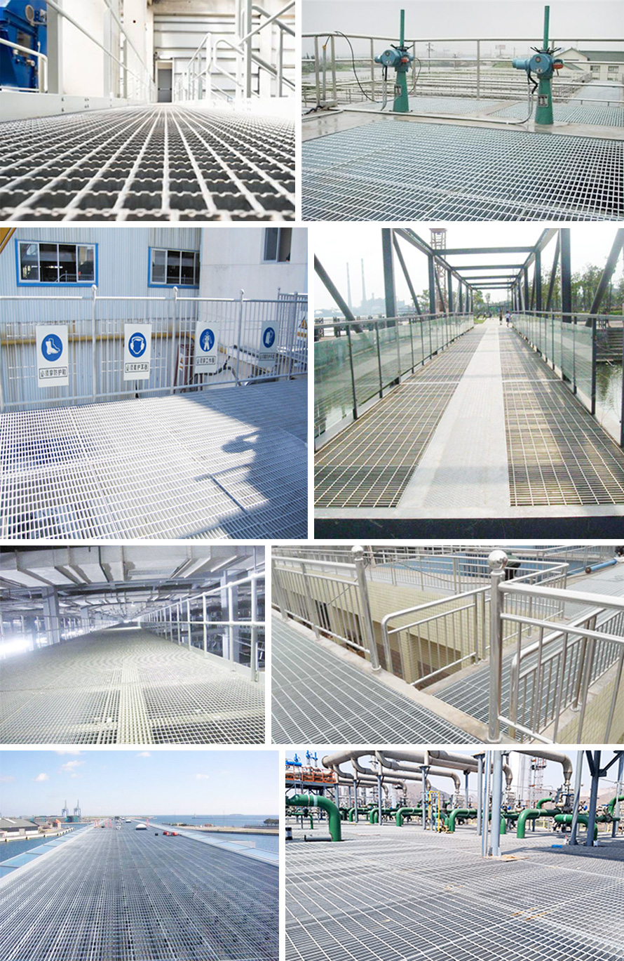 主要用作工業(yè)平臺,鍋爐平臺,環(huán)保設(shè)備,梯踏板,扶欄,通道地板,鐵路橋側(cè)道,高空塔架平臺,排水溝蓋,井蓋,道路隔柵,立體停車場,機(jī)關(guān)、學(xué)校、工廠、企事業(yè)、運動場、也可用作民宅的外窗,陽臺護(hù)欄,高速公路、鐵路的護(hù)欄等。